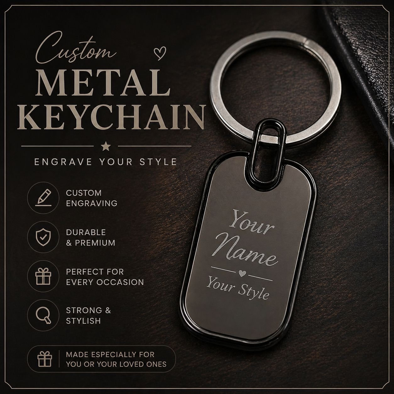 Metal Customized Engrave Your Name/Logo Keychain (Black only)