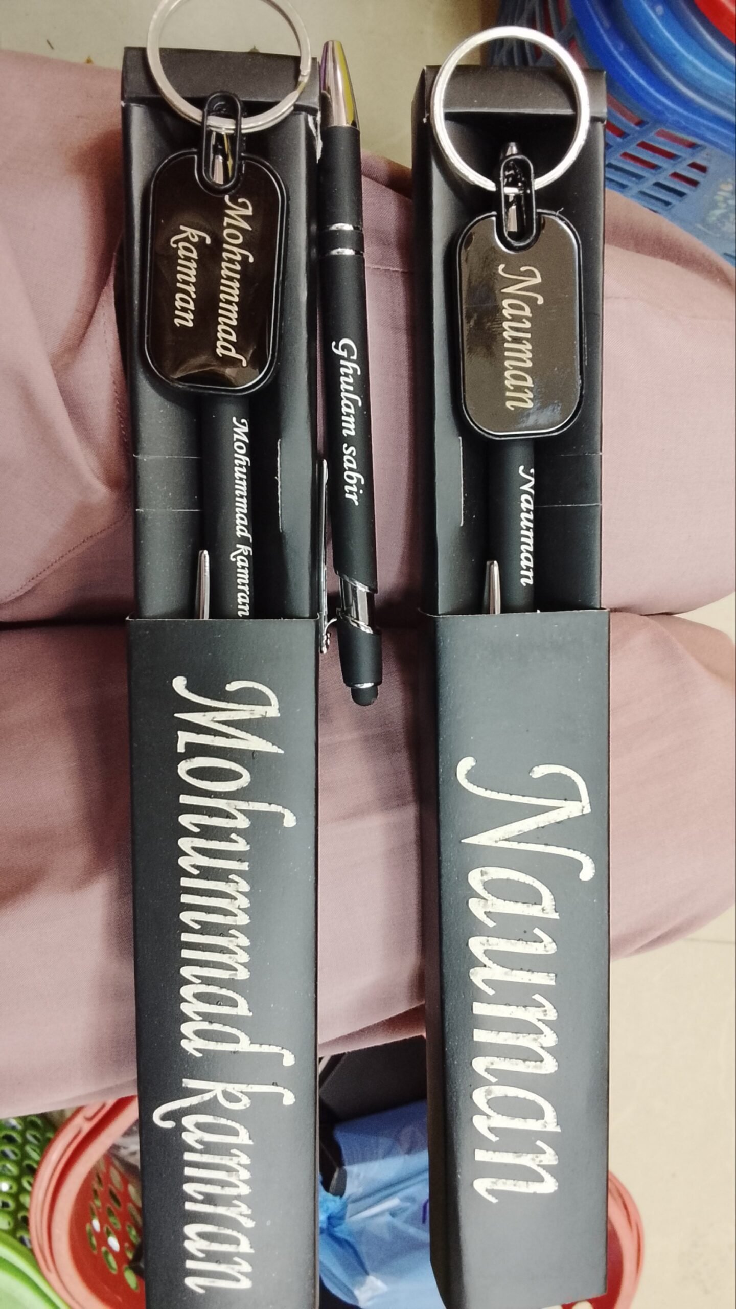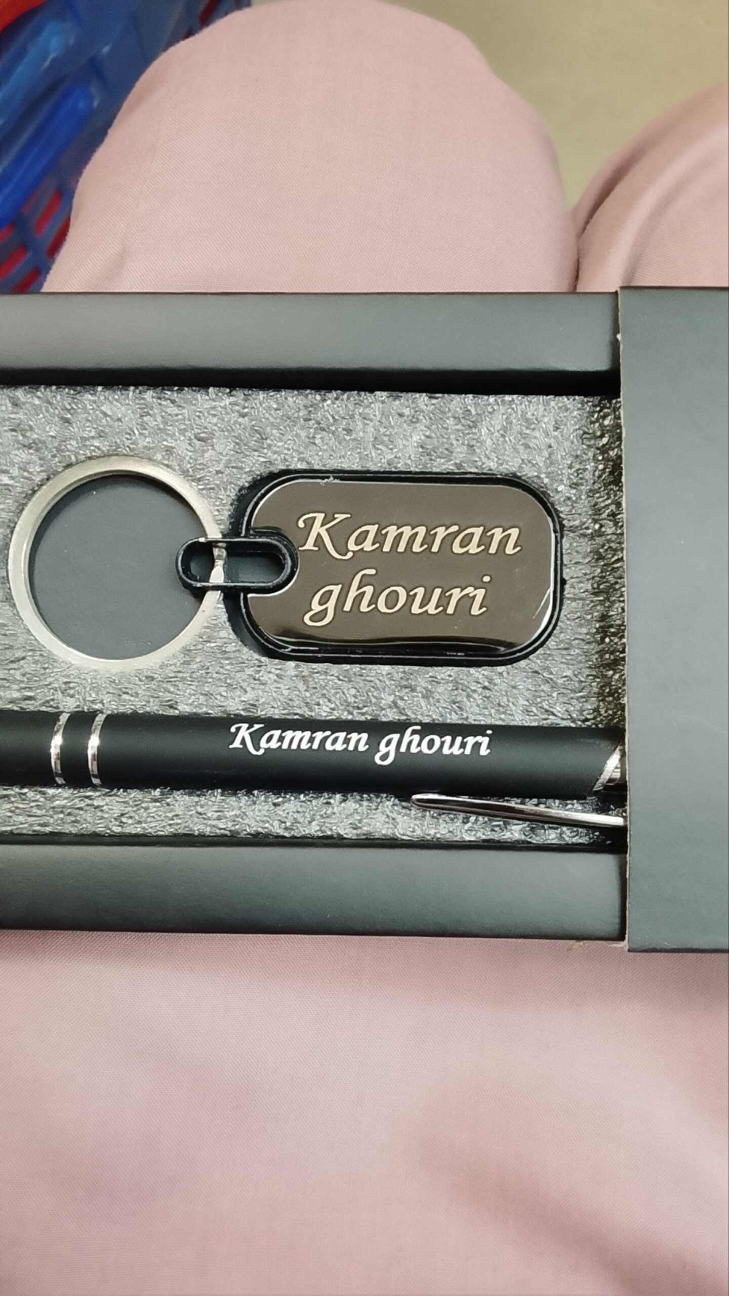 Set of Customized Engrave Your/Name 2in1 Pen with Keychain – Black only Engraving on Pen Engraving on Keychain Engraving on Box Top