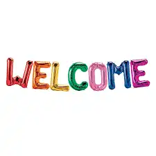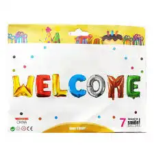 Pack Includes: Full set of foil balloons spelling “WELCOME”